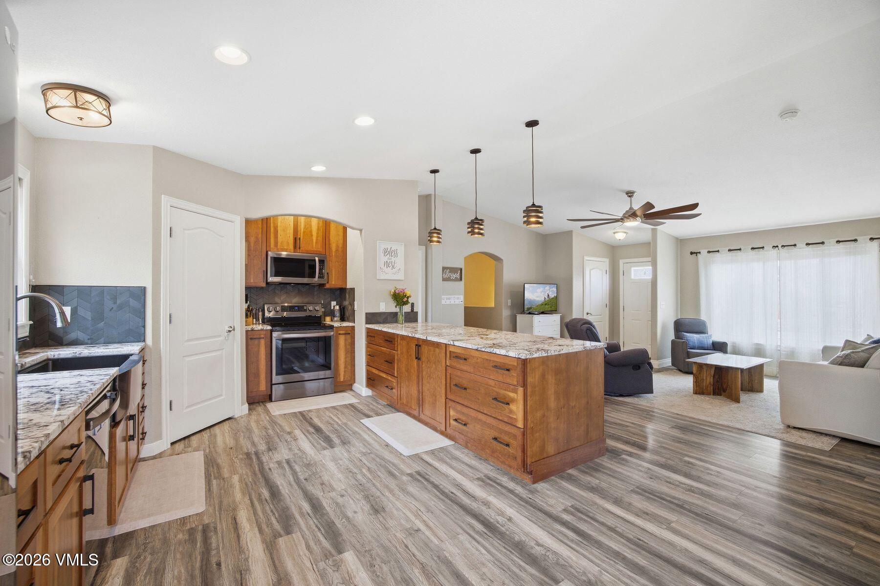 An oversized two-car garage and a 40-foot concrete parking pad provide abundant space for vehicles, gear, or recreational toys. With no HOA and close proximity to schools, dining, shopping, and trail systems, this home offers an exceptional blend of lifestyle, location, and livability.